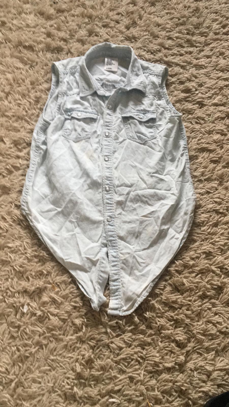Ett snyggt jeans-linne med knut och knappar.